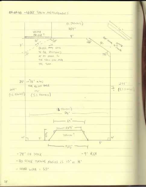 En la sala de medición, determiné que tomaría aproximadamente 78 pies vale de pista para hacer el lazo. Además, el borde era 3,5 pulgadas de ancho, suficiente espacio para el tren despejar la pared.