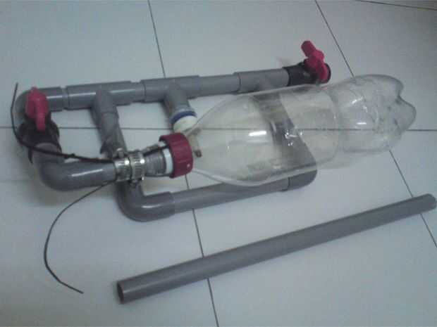 instrucciones sobre la conexión entre depósito y la pistola. lo hice sin la fusión del pvc para la un abultamiento. simplemente añadir una capa de celofán para sellar el boquete pequeño entre botella y tubo. encontrar este enlace: