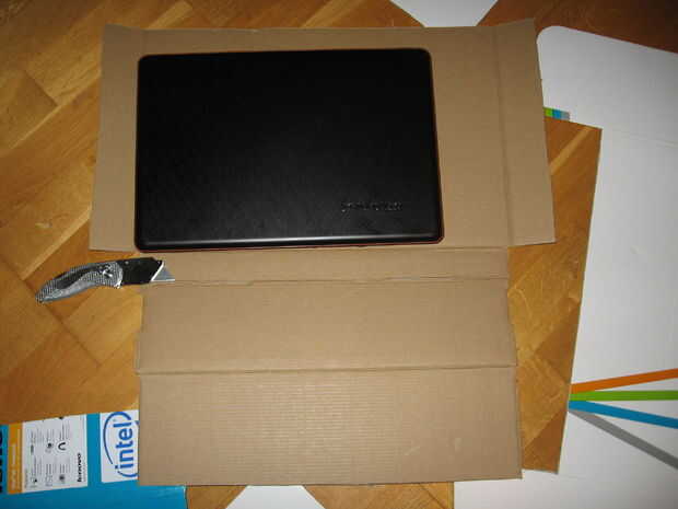 Esto es obvio, pero la parte más importante de la planificación. Aquí tengo el portátil poniendo en la parte superior del lado impreso. Dependiendo de su estilo, puede que desee su diseño en el frente, en el lado, o ambos. Si es posible, hacer todo el caso de una sola pieza, como lo hice. Si es necesario, hacer los cortes en los bordes de la caja será.