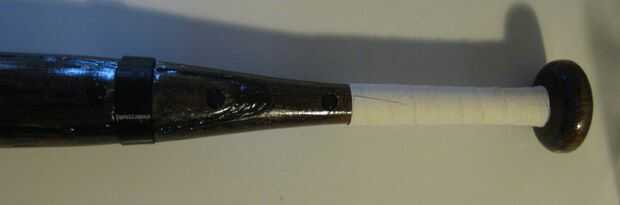 -Quitar una pieza del cuello y aplique una cantidad abundante de pegamento loco a la parte de madera del palo y volver a colocar el pedazo de collar.