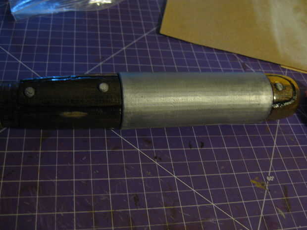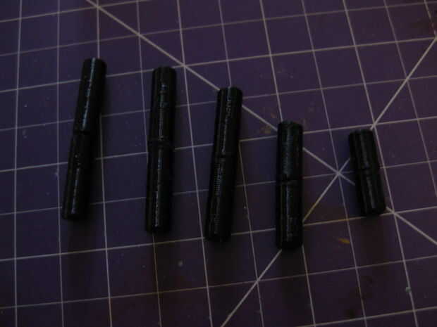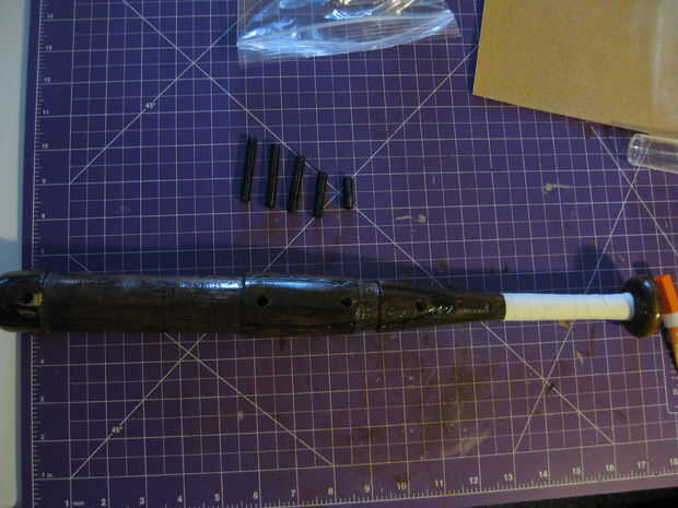 -Seco colocar todas las piezas de impresión 3D en su palo de madera. Quizá deba dremmel a algún material de la parte trasera de los collares para asegurarse de que sólo es aproximadamente un 1 mm de espacio entre las piezas del collar cuando se instala alrededor del palo. Cuando todas las piezas encajan correctamente podemos empezar.