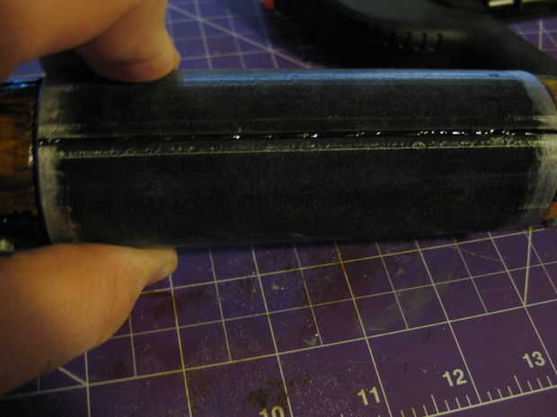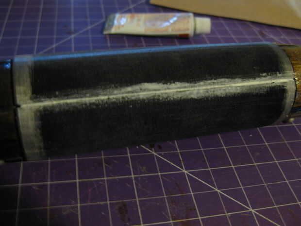 -Cuando se seca el pegamento loco, aplicar alguna masilla contorno de Testors a la costura y frote hacia abajo suave como se muestra en la foto.