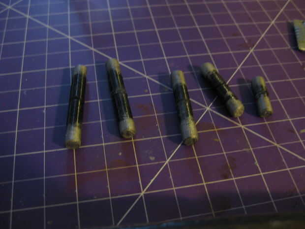 -Usando un guante de látex desechable, aplique algunos estaño rub n buff a los extremos de las piezas de refuerzo como se muestra en la foto.