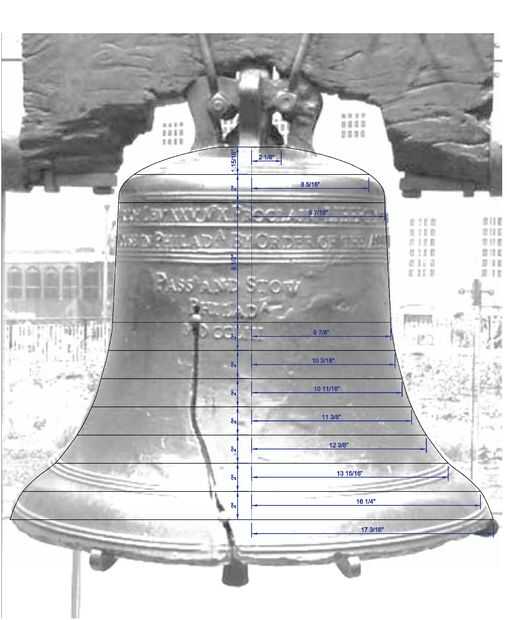 Me encontré con dimensiones de la campana de la libertad real en http://www.ushistory.org/libertybell/more/virtual.htm.