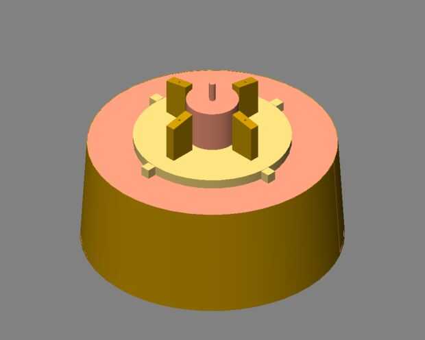 Pegué un disco de madera contrachapada para el disco superior cartulina, pegado y atornillado a las tiras de madera de la percha. Pegué un cilindro de madera relleno para el disco de madera contrachapada; perforó un agujero en su centro de 7/16" pasador de alineación de corona; y pegado de la espiga en su lugar.