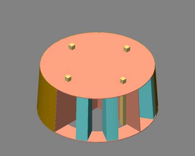 Corte un anillo de cartón corrugado para la base de la sección cónica y pegado en la intersección diafragmas de cartón corrugados para dar rigidez a la Asamblea y proporcionan un medio de alinear el disco superior. Pegué las tiras de madera colgador para los diafragmas. Coloqué el relleno XPS bloques a intervalos de 30 grados para proporcionar más ayuda para la piel de Junta de cartel; adjunto una cartulina tiras de disco superior con la suspensión que sobresalen; arena los bloques XPS para que coincida con la curva del anillo y disco; y la piel de Junta de cartel.