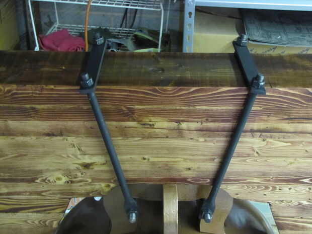 construí la yema desde arriba pegado trozos de madera que eran demasiado pequeñas o demasiado retorcido – para ser útil en otros proyectos. Rasgado, articulado y cepillar hacia abajo las piezas para eliminar torceduras y conseguir piezas rectas de espesor uniforme para pegar. Hice las armellas y otros elementos de montaje de acero pisos y barras que compré en la ferretería. Soldado con autógena acción plana para los extremos del material de la barra, mezcló las formas moliendo, perforó los ojos y rosca la ronda termina.
