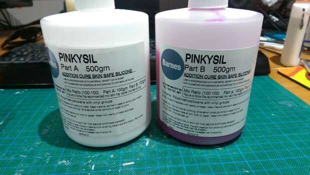 -Una solución de silcone para el molde. Estoy en España para que los productos de Smooth-on son dificiles de conseguir, sin embargo esta alternativa PinkySil es bastante buena y relativamente barata.