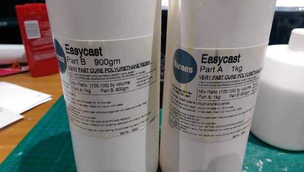 -Un medio de bastidor. Elegí una resina de poliuretano de 2 parte que establece rápidamente y es ligero.