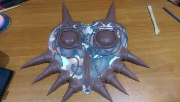 Disculpas por la falta de imágenes, originalmente no era documentar esto. El primer paso es modelar la base en forma de corazón de la máscara. Sabía que sería capaz de hacerlo perfectamente liso mientras scuplting a mano, así que primero hizo un 'bruto' en arcilla, con la resina del molde y utiliza coche relleno para rellenar los baches y fijar la simetría. Entonces utilicé esto como base para los detalles más finos.
