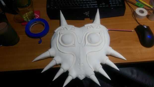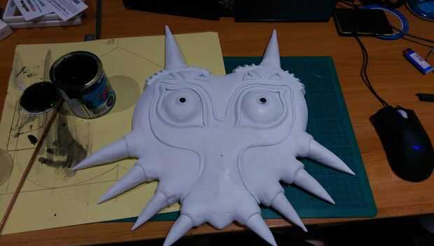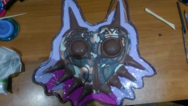 Para obtener un molde de la máscara, derramé la resina EasyCast en la chaqueta en pequeñas cantidades, reducir el espesor de la resina en varias capas del edificio. Cortar ranuras pequeñas sobre las espaldas de los cuernos para quitar el molde, por lo que sostuve los cierran y los cuernos del molde cuidadosamente.