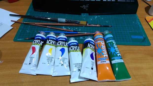 Ahora que el elenco es agradable y limpio, podemos pintar. Recogí un montón de baratas pinturas acrílicas y pinceles y probado los colores de algunos modelos de chatarra que había hecho. Esta parte es bastante simple, empecé con los colores base que tomaron más espacio, enmascarando las zonas para un borde limpio y con una esponja la pintura en capas en los cuernos y los ojos para darles algunos más profundidad (muy contento con los ojos). Por fin acabó todo con una cabra de claro satinada pintura en aerosol para sellar los colores y darle un leve brillo brillante (no quería le daría el brillo que la pintura del lustre).