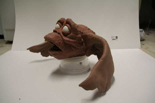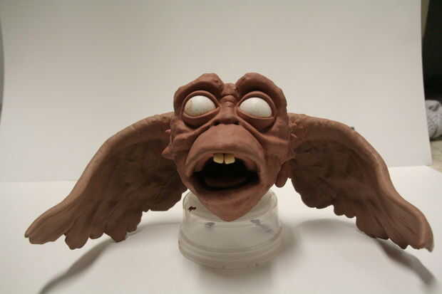 Pongo el disco de plástico en el ojo para que los globos oculares sea perfectamente redondos. Los discos fueron moldeados de mármol grande y luego en plástico. También puse en los dientes de acrílico en la boca.