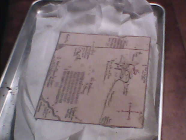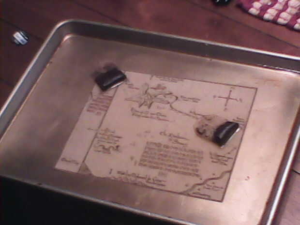 Hacer algunos realmente oscuro té EARL GREY o podría utilizar café pero café deja un olor muy fuerte luego. Vierta el café o el té dentro de una bandeja y poner el mapa en su interior por un tiempo. Yo espere mina 40 minutos en té frío. Si mantiene el té caliente durante mucho tiempo luego remoje su mapa durante unos 15 minutos. También si usted quiere verter el té en una cacerola y dejar cocer a fuego lento mientras que el mapa está en remojo en ella, funcionaría mucho mejor. Una vez que se empapa a través de todo el camino, podría poner alguna toalla de papel en otra charola y deje que se seque durante la noche en el mapa