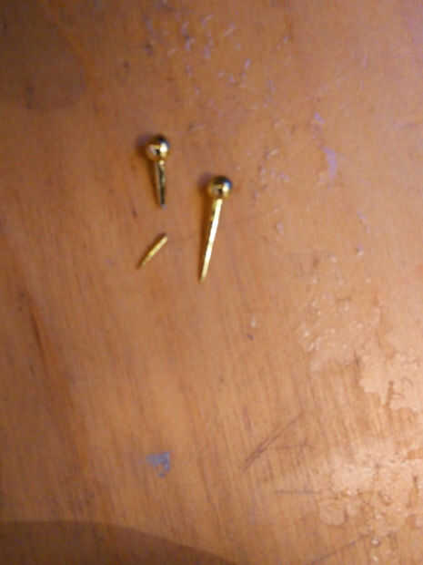 En la imagen superior puedes ver los pins. Todo lo que necesitas hacer es romper el pasador en la mitad y empuje el extremo afilado a través de la espuma del arte en el tablero de la espuma.