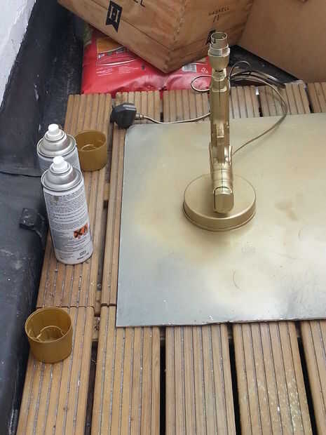 Para este proyecto usé 5 capas de aerosol oro seguido por 4 capas de la laca del oro claro. Dependiendo del tipo de pintura que tiene/encontrar/comprar puede que necesite más o menos capas. Permitir suficiente tiempo para cada capa se seque.