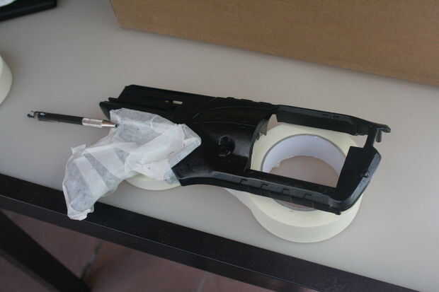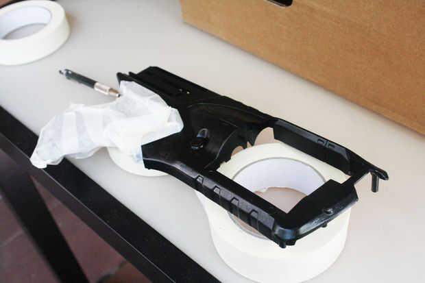Use la cinta adhesiva para cubrir la zona que desea seguir siendo negro, en nuestro caso el mango.