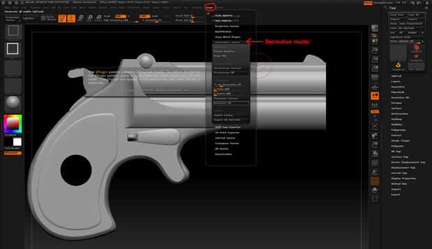 El 2 º paso de este proceso fue asegurarse de que el modelo era listo para ser enviados a la impresora 3d a ser psíquico. Para ello tenía que diezmar sobre todo el modelo de 8 millones de totales de puntos hasta total menos de 1 millón de puntos utilizando una zplugin denominado a decimation master. Razonamiento para esto es para que el modelo se puede importar fácilmente en el programa de catalizador que envía el archivo STL del modelo a la impresora 3d.