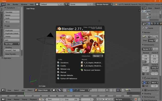 Todo el proceso comenzó con mi 3D recomendado: programa de diseño: Blender. Se puede descargar en https://www.blender.org/.