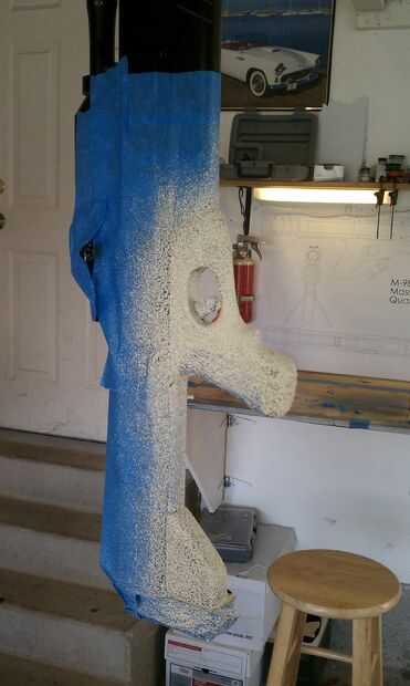La empuñadura y culata de la pistola recibieron una textura áspera. Enmascare alrededor de la empuñadura con cinta de pintor y luego rocía la textura en. Esta pintura de la textura toma un tiempo para secar. Una vez que la textura era secar la retire la cinta adhesiva y la pistola entera recibe una capa de capa de base de níquel. A ver por qué cuando llegamos a la intemperie. Deje que este seco completamente antes de continuar con la capa superior.