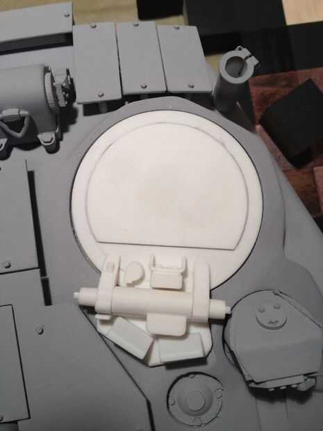 Las fotos de arriba muestran algunos de los productos finales, así como algunas fotos de cómo creé una escotilla de la torreta. La imagen muestra las partes modelado en 3DS Max. Cada pieza de color es una parte separada I modelado e impreso. Entonces yo pegamento las piezas simples para formar la parte más compleja. De esta manera hice todo el detalle que ves en el tanque. Formas simples, pegadas juntos para buscar más complejos. Está sobre él. Realmente no era complejo... simplemente desperdiciador de tiempo. El recurso número uno que usé para este proyecto fue paciencia.