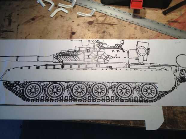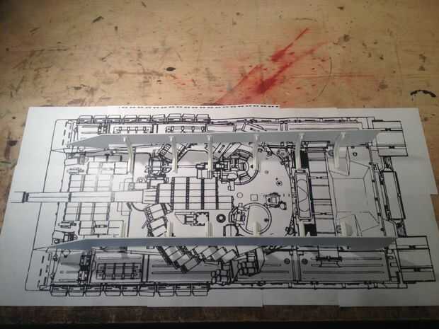 Una vez tuve un montón de fotos para mirar he cavado alrededor de internet y encontrado algunas vistas ortográficas del tanque. Lado, frente, parte posterior y superior. Imprimí estos hacia fuera a ser el tamaño exacto que yo quería el modelo final que. Esto es super importante... estas son las cosas más cercanas a planos llegar (a menos claro que de alguna manera encontrará planos!).
