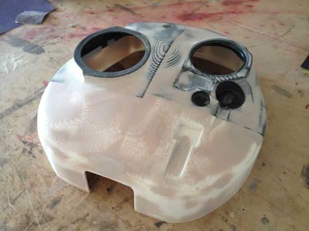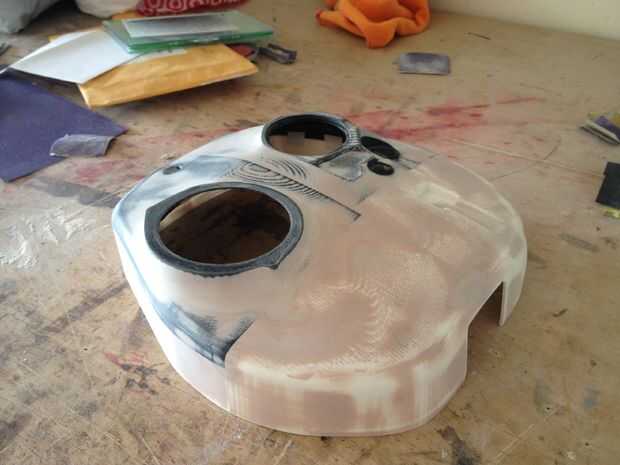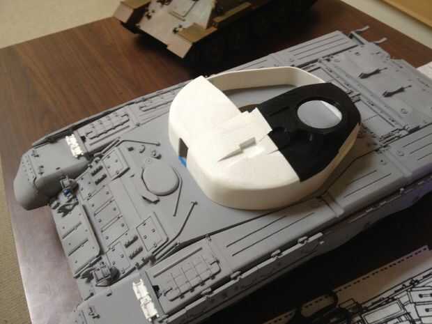 La torre es bastante grande. Demasiado grande para imprimir de una sola vez. Después de modelar la piel de la torrecilla (esto ocurrió unas horas como simplemente no podía absolutamente conseguir los contornos del derecho forma en 3DS Max), dividen la torreta en 6 pedazos. Imprimí cada pieza y luego había pegado con tiras de plástico. Los 6 primeros cuadros muestran la concha torrecilla que se unen... Lo imprimí en un ajuste bajo detalle que yo sabía que me gustaría bondo todo. Usted puede ver realmente cómo áspero las impresiones fueron! Las siguiente fotos pocos muestran el bondo sucediendo y a lijar. Entonces había pintado la carcasa gris una vez lijado se hizo.