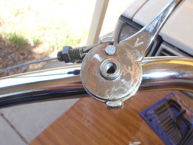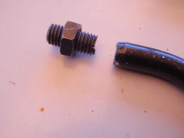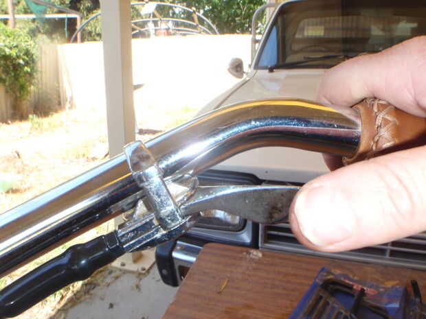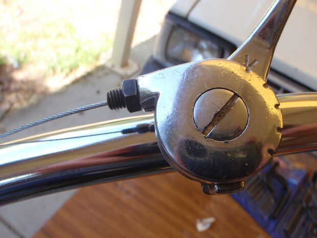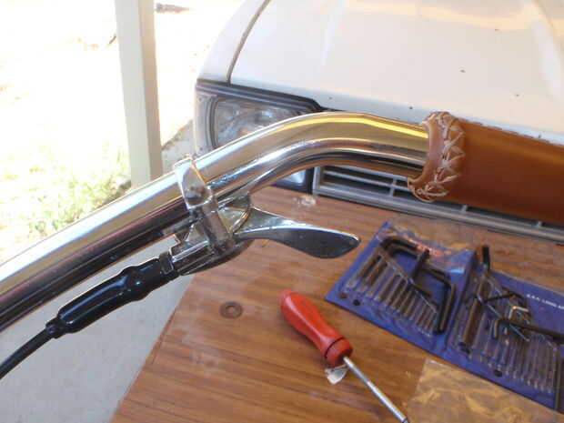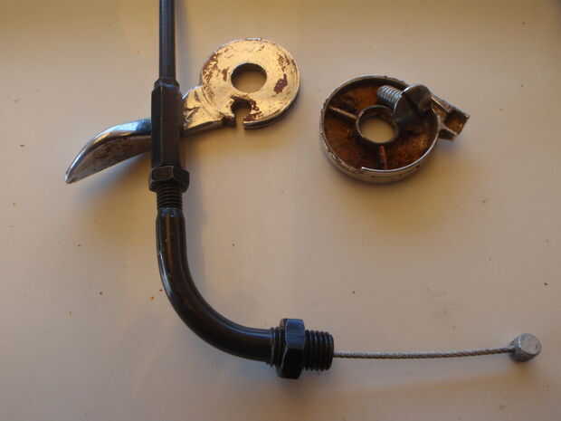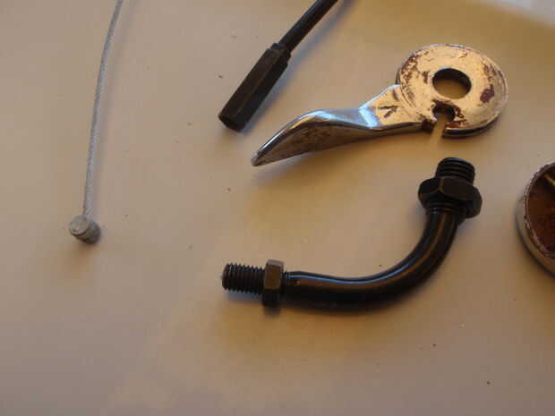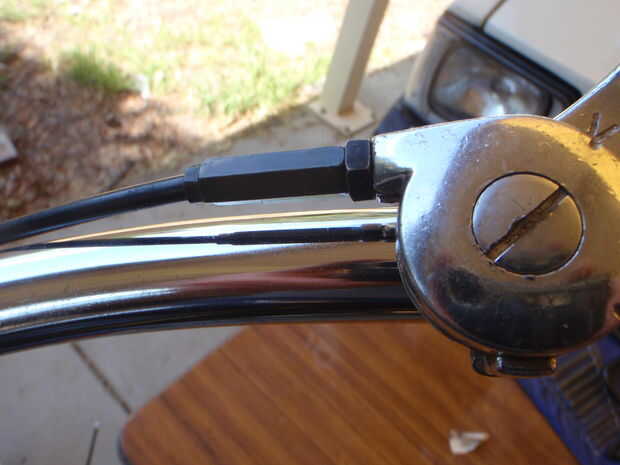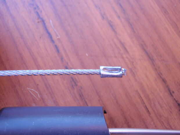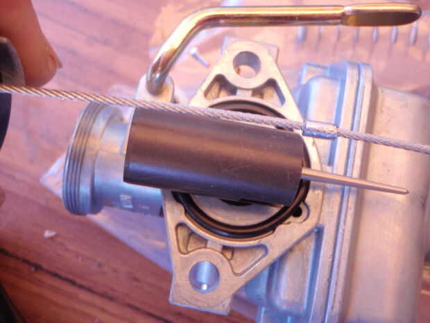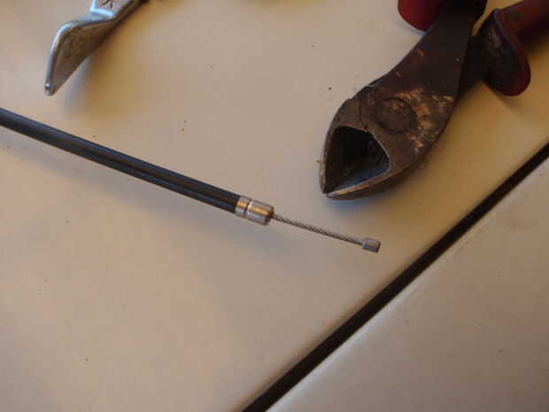 La primera tarea es cortar el extremo pequeño del cable y retire el cable interno para que el tubo de la curva puede ser cortado. Uno el tubo se corta el interior cable es reinstalado y la vieja válvula reguladora del pulgar está equipado con el cable.