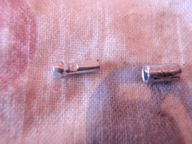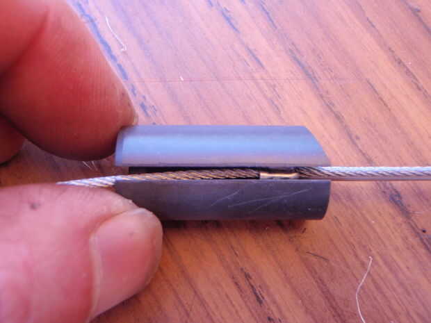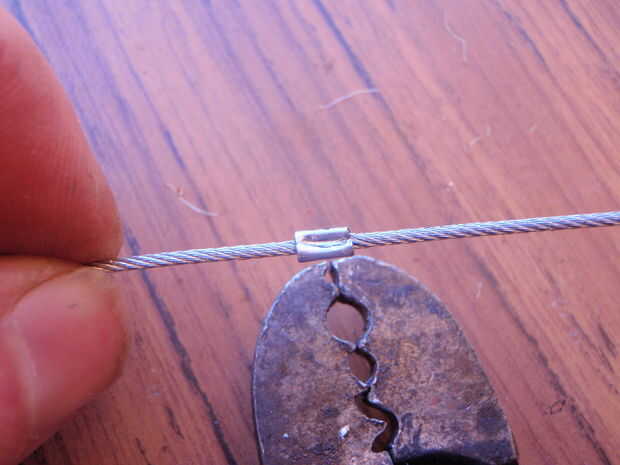 Un remache pop es corte y el saque de centro y esto se convierte en el el extremo del cable nuevo. Antes de prensar el remache en el cable se revisa cada cosa y la longitud se mide por lo que el acelerador funciona correctamente. Una vez prensado en con un cable eléctrico, herramienta que prensa el extremo del cable es cortado y reinstalado en el carburador.