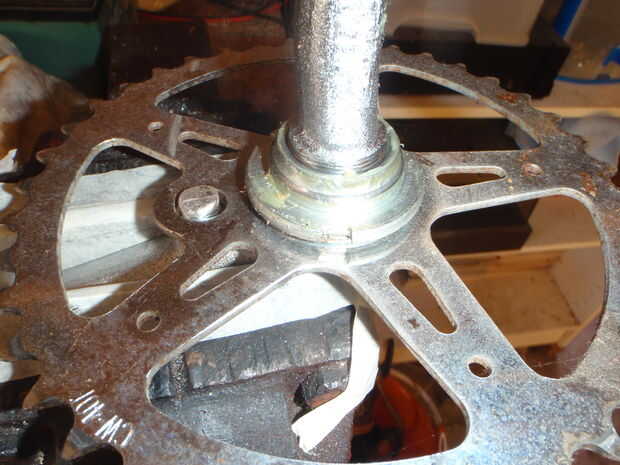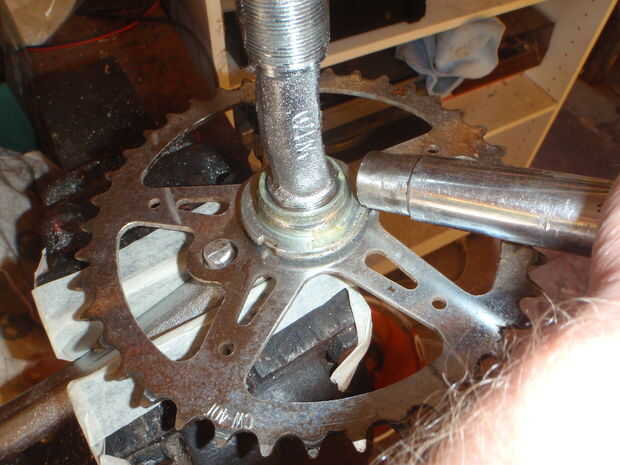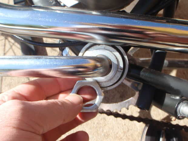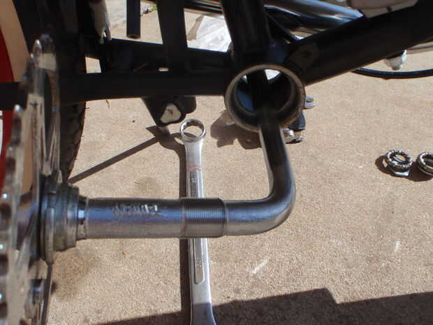 Basta con retirar los pedales, protector de cadena y la tuerca grande en el lado de mano izquierda y la manivela se saque desde el lado derecho. Tenga cuidado con los rodamientos de bolas y tome nota de cómo todo irá de nuevo juntos.