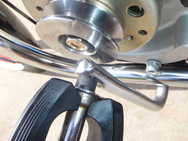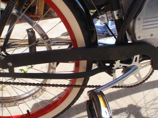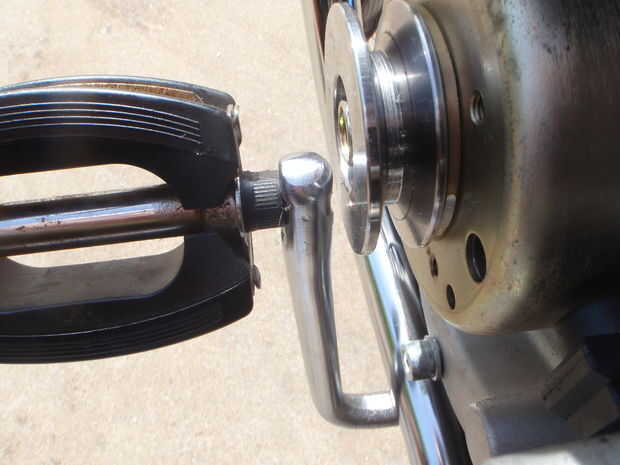 Después de la manivela nueva encontré que el pedal todavía toca el protector de la correa. así que voy a tener que tener un pensar en cómo arreglar eso, pero si me quito la Guardia la moto ahora es capaz de montar.