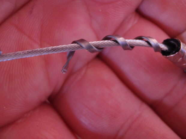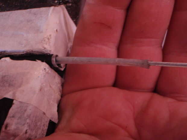 La palanca del descompresor necesita más cable del interior por lo que he quitado el cable externo y volver a colocar el extremo del cable externo. Esto es bastante difícil ya que implica cortar con cuidado el cable exterior con dañar el cable interior. Quitar la envoltura plástica externa. estirado el cable interior de acero y corte, entonces desenrollado el cable exterior y cortar a la longitud correcta. Luego cortar el forro interior y volver a colocar el extremo del cable externo.