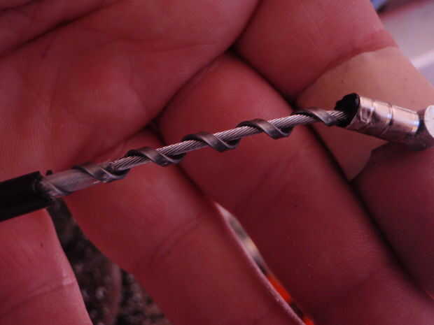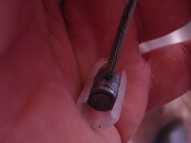 En primer lugar el extremo del cable de embrague era demasiado pequeño para la palanca y es probable que abandono cuando estoy deshaciendo así que cortar un pequeño trozo de manguera y colocarla en el extremo del cable y recortan con una cuchilla.