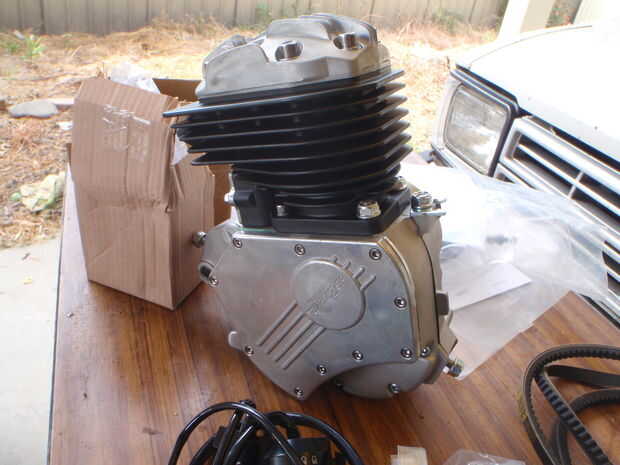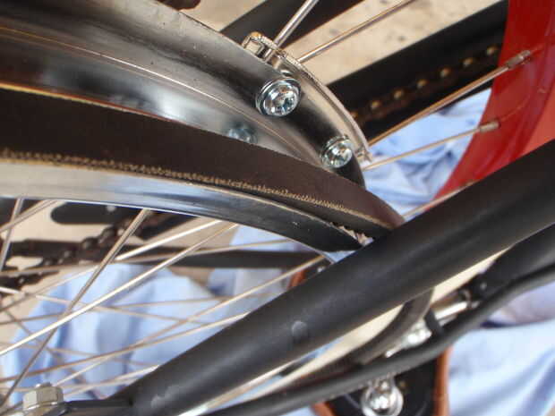 A continuación, ajuste la correa larga y vuelva a colocar la rueda, cadena y el brazo del freno.