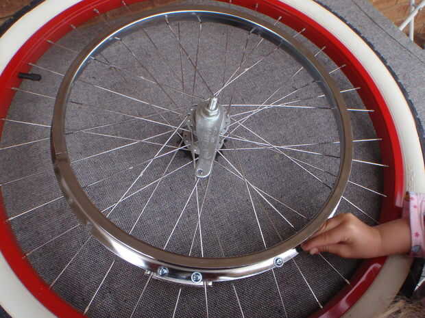 No importa mal llega al más adelante en el siguiente paso, montaje de la polea. Esto también era muy fácil, sólo quitar la rueda trasera y fijarlo con la abrazadera en los radios. Entonces usted necesita comprobar que es centrado y apriete las abrazaderas. Encontré que era muy cercano al centro y no necesita mucho ajuste a todos como la forma de las pinzas me obligó a colocarlo en el centro de la rueda.