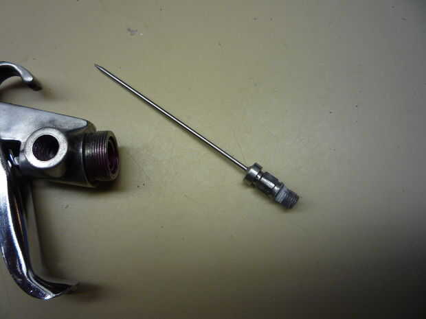 tomar el conjunto de aguja y tornillo en la parte roscada de donde vino... Use una llave pequeña en los planos de la pieza para fijar para arriba.