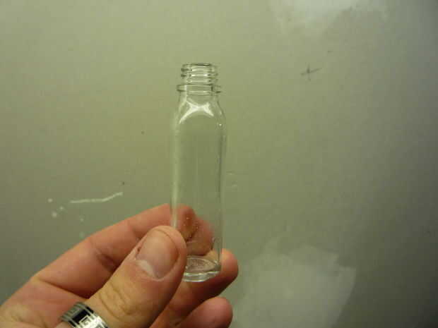 fui y buscó alrededor de la tienda tratando de encontrar una botella fría como el cristal vil, terminé yendo con una botella de anbesol que es un medicamento para el dolor de muelas dolor... simplemente retire la etiqueta y limpie la botella...