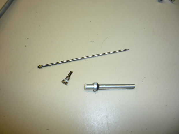el ensamblaje de la aguja tiene Philips un pequeño tornillo en la parte posterior, quite y la aguja se descomponen en tres pedazos. como en la primera foto.