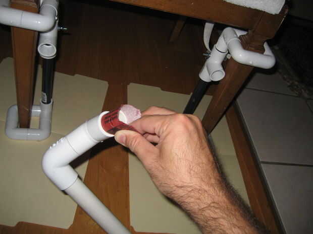 - Si sus sillas son significativamente más altos que los míos, la barra puede no ser lo suficientemente alta. Intente usar las canalizaciones verticales más largas.