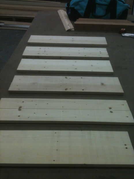 A continuación, coloque ese articulado contra la valla e incluso hacia fuera de un borde de cada tabla. Hacer eso con todas sus piezas (6 en mi caso).
