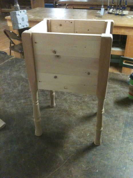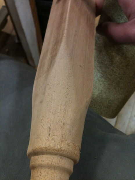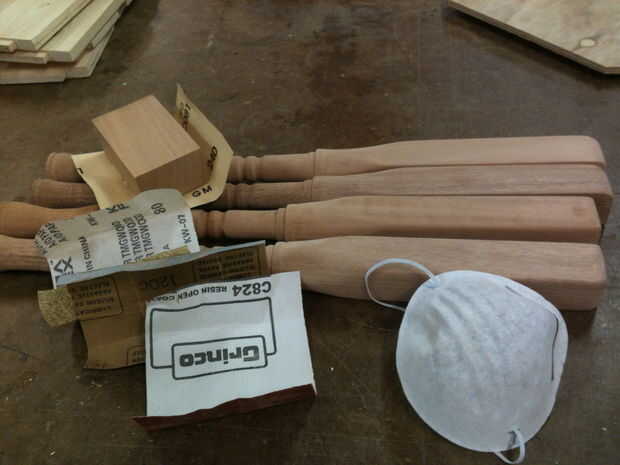 Las patas eran interesantes. He utilizado un bloque de lijado de las piezas rectangulares y a redondo hacia fuera todos los bordes duros/sharp de cosas, pero tuve que usar solo mi mano en las piezas formadas. Yo ya había enarenado las secciones dado vuelta cuando las piezas en el torno, que hizo esas porciones mucho más fácil.