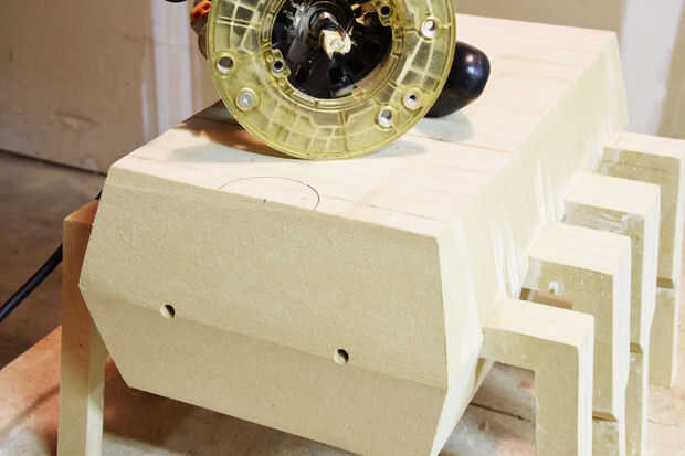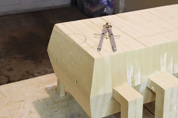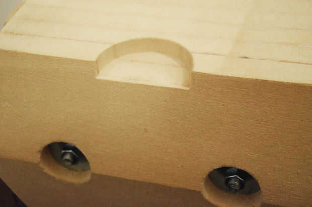 Un semicírculo en un extremo con un diámetro de 2 1/2 pulgadas de la marca. Utilizando un router, a mano alzada la muesca de 1/2 pulgada de profundidad.