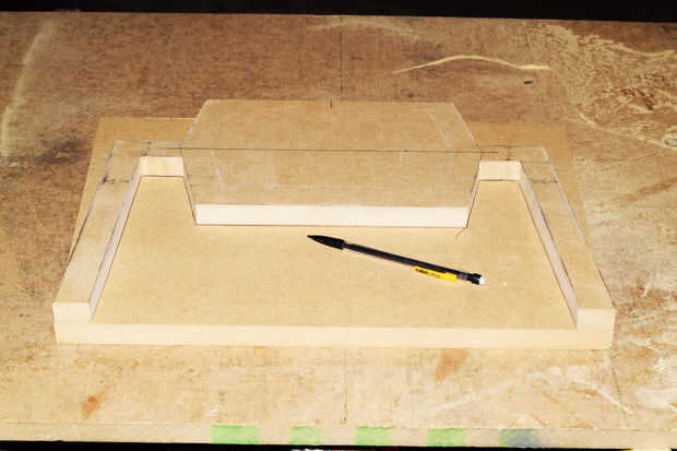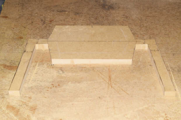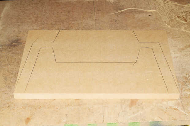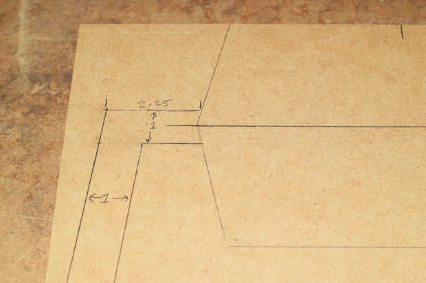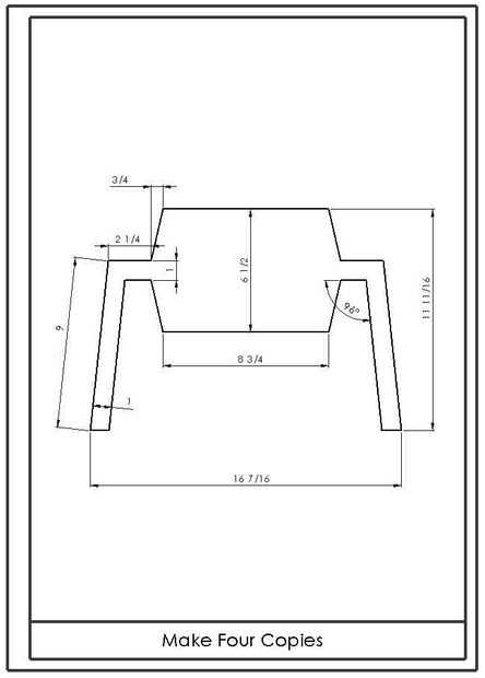 Cortar las cuatro secciones de las patas que va a tocar el suelo. Corte mina de espacios en blanco que mide 16 7/16 x 11 1/6 pulgadas había cortado el primero luego usar como plantilla para otros.