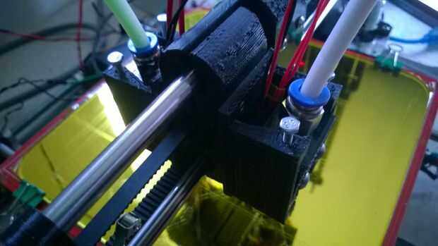 Aunque originalmente diseñado para la extrusión doble, el diseño final podría teóricamente permiten hasta 4 cabezas de impresión al mismo tiempo. Actualmente no tengo el hardware para probar esto, así que espero alguien más!