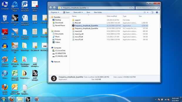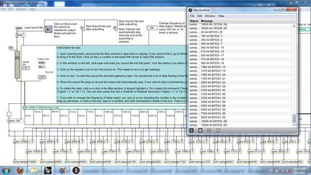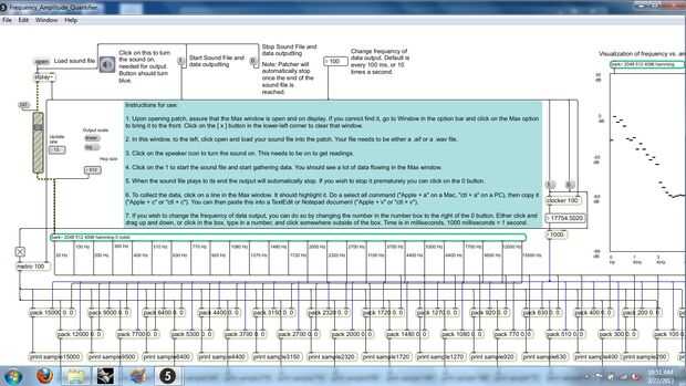 Para iniciar la recolección de datos, haga clic en el botón '1' al lado del icono de sonido. En el lado derecho de la ventana, verá una caja rectangular con puntos que representan datos fluctuante como el sonido se recoge. (Imagen 5)