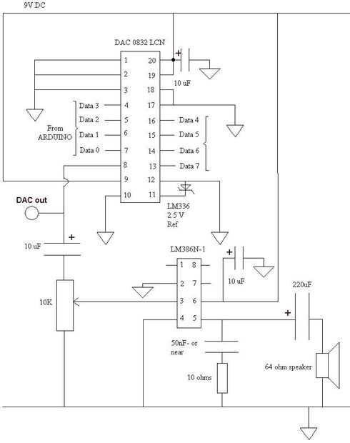 - Nota la conexión directa al pin 8 de la DAC - It es muy útil para probar.