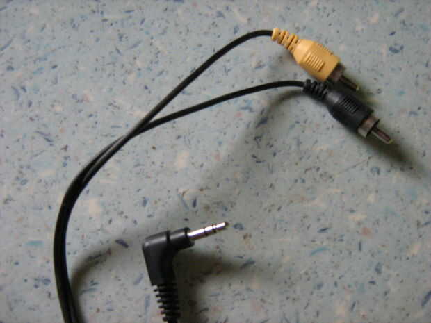 -adaptador: 3, 5mm estéreo para conectar 2 enchufes cinch (imagen abajo)