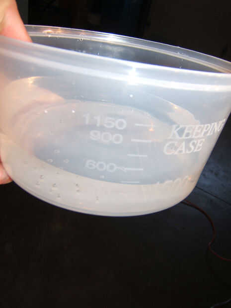 Puesto que el agua se vierte en primer lugar, ahora sería momento para dosificar tanta agua como cree que necesita (teniendo en cuenta que el alginato se ocupan algo de espacio adicional en el envase).