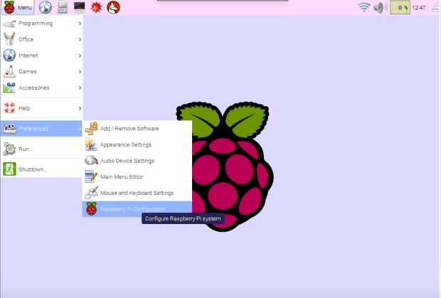 Menú--> Preferencias--> configuración de frambuesa Pi
