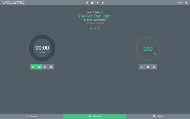 En el proyecto original que quería usar runeaudio para alimentar todas las cosas pero fue buggy y dolorosa configurar (me tardé horas configurar el receptor de infrarrojos), por lo que decidí usar Volumio que es más lento (raspbian base vs arco base) y la interfaz no es tan buena como runeaudio (aún no) pero es más estable y confiable.